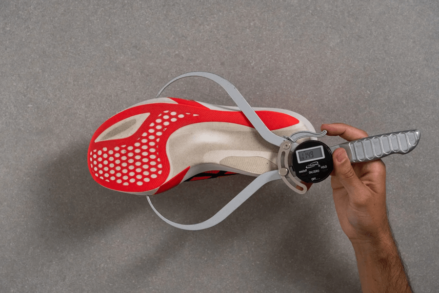 Hầu hết các mẫu giày thi đấu đều có gắng đạt đến chiều cao tối đa do World Athletics quy định. ASICS Metaspeed cũng vậy, nó đạt 38.7 mm ở gót, chỉ thấp hơn 1.3 mm so với giới hạn.