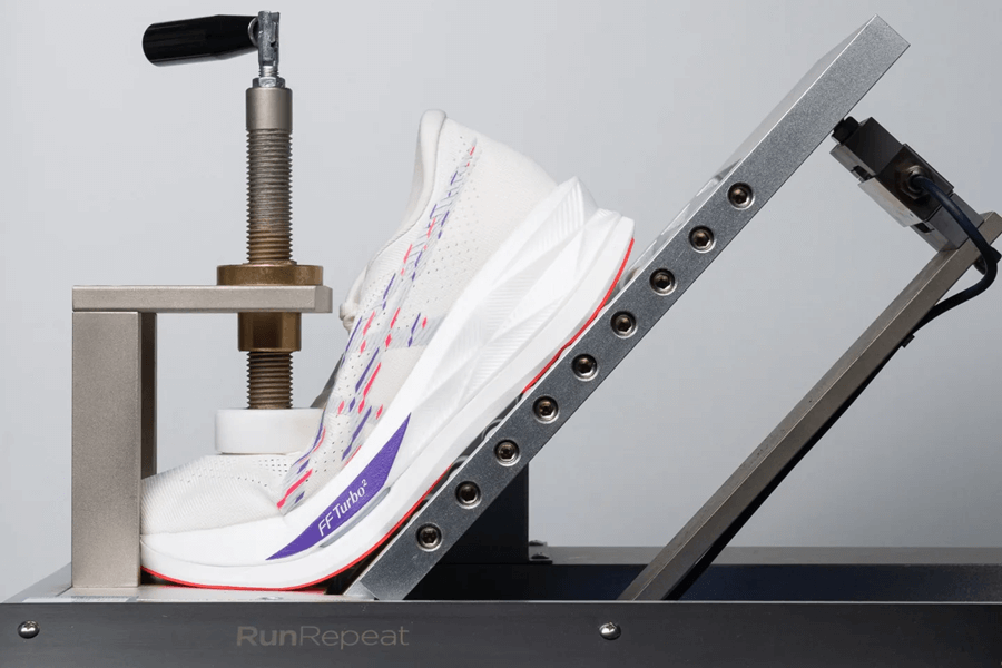 Lớp foam nằm dưới tấm plate là FF Blast Max. Lớp đệm này, tiếp xúc gần với mặt đất hơn, cũng ghi nhận độ mềm tương đương với 20.0 HA. Tuy nhiên, khả năng hoàn trả năng lượng của nó được đánh giá là thấp hơn một chút so với lớp trên FF Turbo².