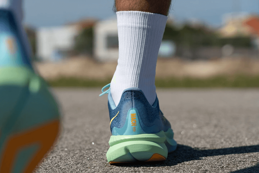 Hoka Mach 6 có độ đệm gót cực tốt, cao 36.0 mm, nhờ đó Mach 6 trở nên nổi bật rõ rệt giữa các đôi giày khác trong cùng phân khúc. Hơn nữa, phần gót giày cao cũng mang đến cảm giác chạy khác biệt và phù hợp với xu hướng hiện đại là giày đệm đế cao.