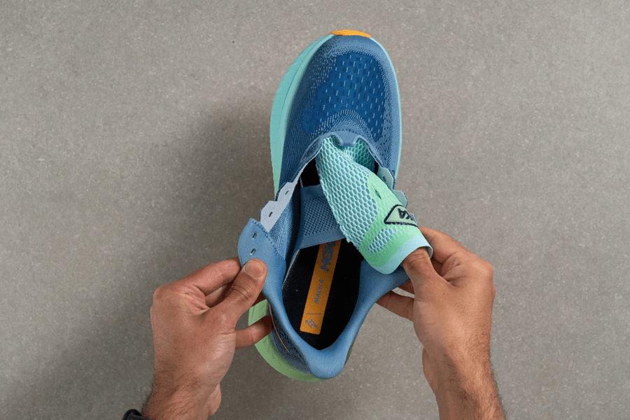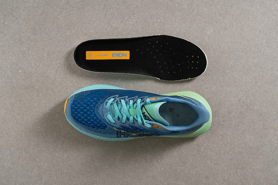 Phần lót giày có thể tháo rời và thay thế vì nó không được dán chặt vào đế. Nhưng lót giày của Hoka Mach 6 sẽ đặc biệt hơn bởi thiết kế các lỗ thông gió. Nếu muốn tận dụng tối đa khả năng thoáng khí của đôi giày này, bạn nên sử dụng đúng lót giày nguyên bản của nó.