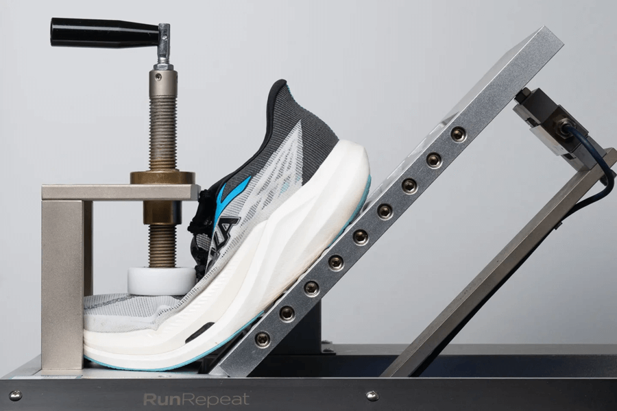 Bài kiểm tra về khả năng hấp thụ sốc của giày cực kỳ quan trọng để xem nó có phù hợp cho half marathon, marathon hay các buổi chạy dài hay không. Rất may mắn là Hoka Rocket X 3 có khả năng hấp thụ sốc vượt trội so với mức trung bình với 155 SA ở gót và 112 SA ở mũi giày.