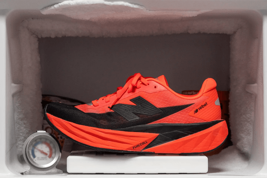Lợi ích của việc pha trộn 20% PEBA với 80% EVA như foam FuelCell này là PEBA giúp bù đắp cho hiệu suất yếu của EVA trong điều kiện lạnh. Nhờ hỗn hợp này, lớp foam chỉ cứng hơn 17% sau 20 phút trong tủ đông, một sự cải thiện rõ rệt so với mức trung bình.