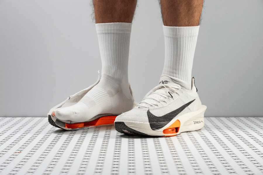 Sự thay đổi này không nói lên rằng những người người tiếp đất gót sẽ không dùng được Nike Alphafly 3, thực tế, nhiều người tiếp đất gót còn thấy nó thoải mái hơn do rocker ít rõ ràng, mà độ dày gót cao nên tất yếu cũng đem lại cảm giác mềm mại vượt trội. Tuy nhiên, nếu bạn ưa thích cảm giác “bập bênh ” rõ hơn ở phần gót, bạn có thể tìm thấy điều đó ở một đôi giày lai giữa luyện tập và thi đấu, chẳng hạn như ASICS Superblast.