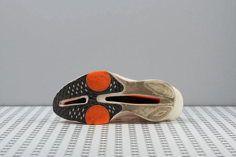 Nike Alphafly 3 có độ dày đế ngoài là 1.9 mm. Thậm chí trong tương lai, các đôi giày thi đấu còn có thể mỏng hơn nữa. Lý do rất đơn giản là những đôi giày được thiết kế để phá kỷ lục thế giới, hiệu suất giày nắm vai trò then chốt mà đế giữa mới là cái tạo nên hiệu suất, chứ không phải đế ngoài. Nike chấp nhận đánh đổi độ bền, sử dụng lớp cao su mỏng hơn để tối đa hóa hiệu suất đế giữa, tăng cường độ nảy và cải thiện độ êm ái tối đa.