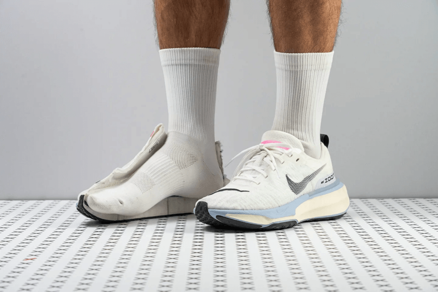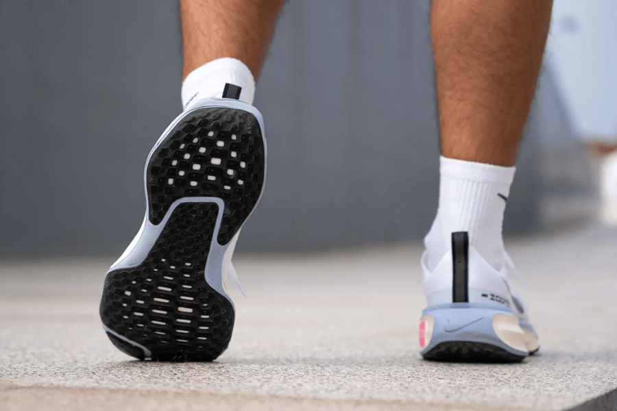 Tưởng tượng như bạn đang mang một chiếc gối mút dưới chân, tuy êm nhưng trải nghiệm chạy sẽ chậm đi. ZoomX trong Nike Invincible 3 mang lại cảm giác mềm, thêm cả thiết kế đế không rocker nên hiệu ứng lăn về trước gần như không có, bàn chân phải tự dùng lực nhiều hơn.