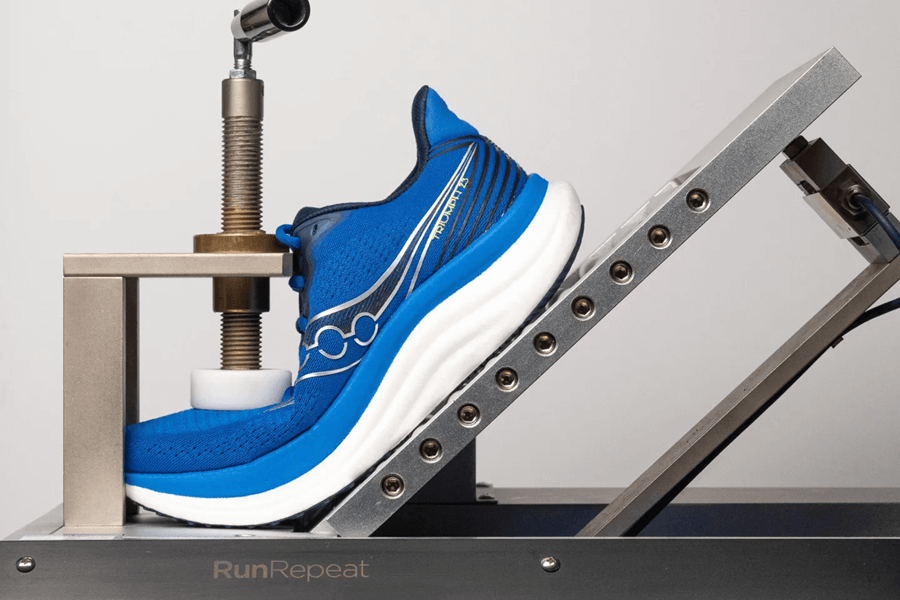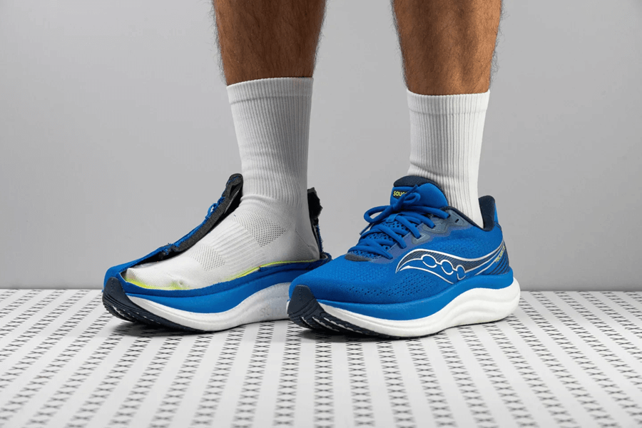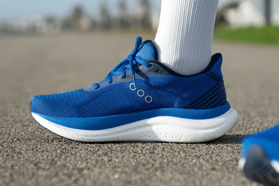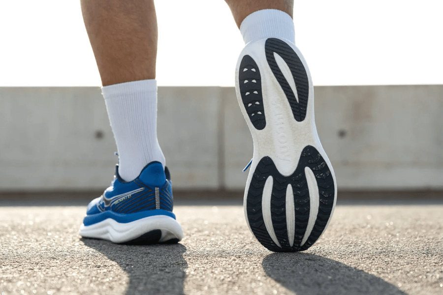 Foam giày hơi cứng hơn bình thường nhưng lại có lợi thế rõ ràng trong việc đem đến cảm giác chạy ổn định hơn. Qua phần thử nghiệm Saucony Triumph 23, đôi giày đã để lại ấn tượng rất tốt ở khía cạnh này nhờ phần đế tiếp đất rộng, thành bên hỗ trợ chắc chắn, foam PWRRUN PB cứng hơn và phần upper có kết cấu chặt chẽ. Dù có hy sinh chút độ thoáng khí nhưng lại tăng cường khả năng giữ chân vững chắc trước các lực tác động ngang.